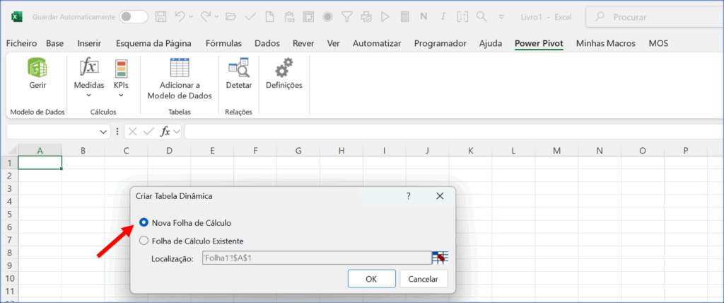 14. Neste momento o Excel passa para o novo livro, criado logo de início. Clique OK, para colocar tabela dinâmica