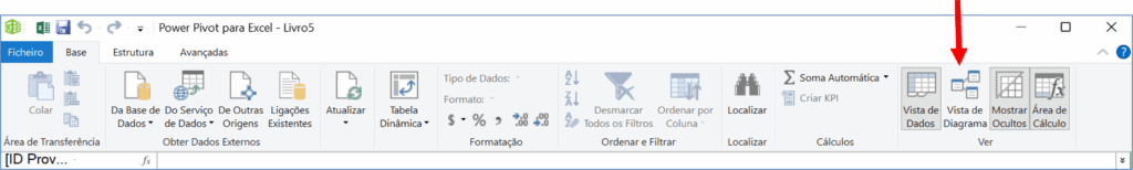 9. No separador Base, clique/ative a Vista de Diagrama.